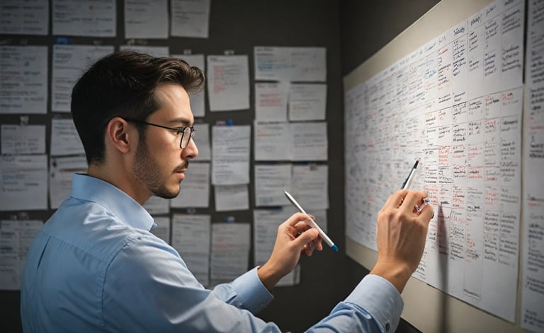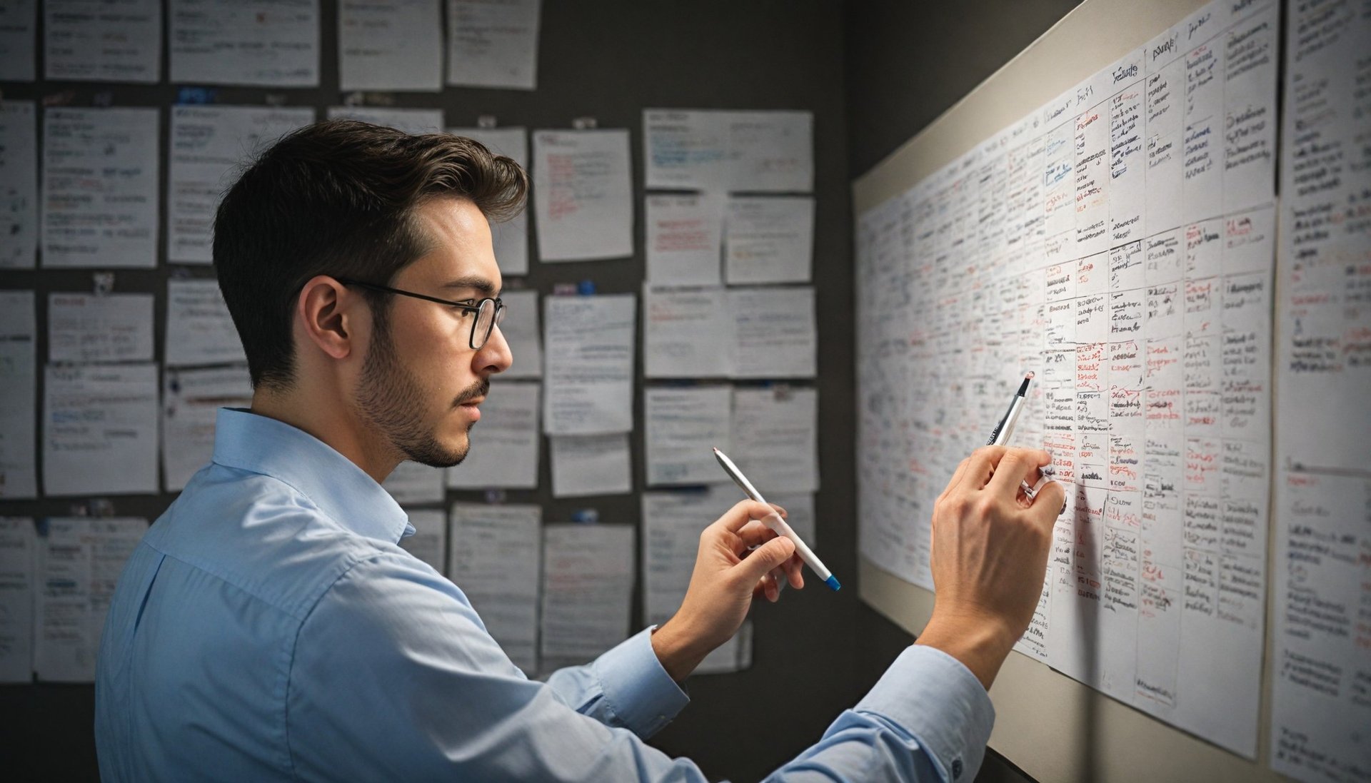 "Developing a comprehensive project management plan using tools and visual aids to stay organized and on track with multiple research projects."