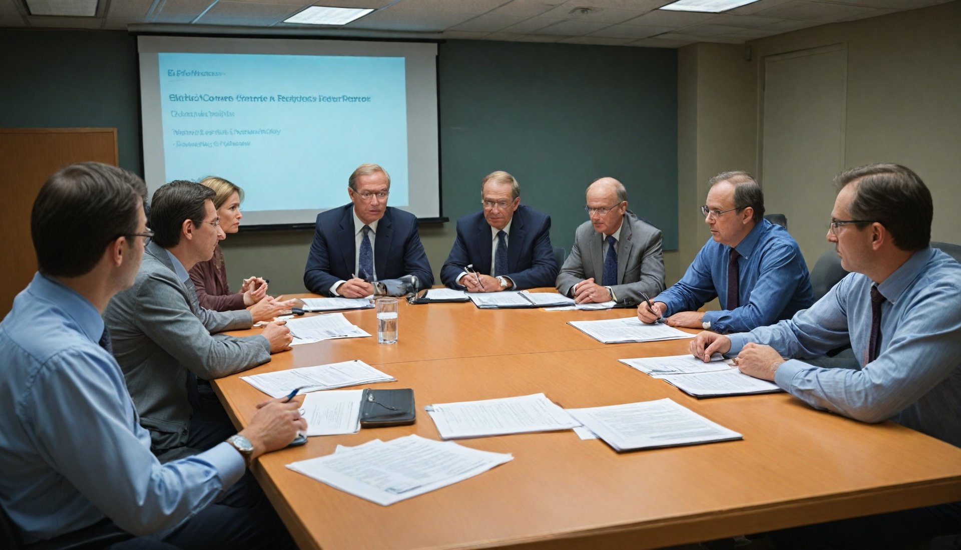 "An ethics committee reviewing a research proposal, discussing ethical considerations and providing feedback."