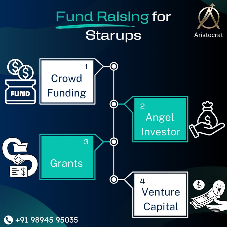 "Explore various funding options, from crowd funding to venture capital, to fuel your startup's growth."